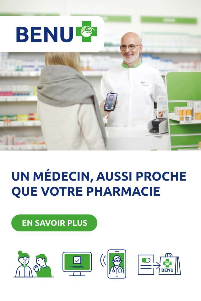 Les Pharmacies BENU SA ont souhaité mettre en avant un service inédit : la possibilité de consulter un médecin via Medgate directement depuis sa pharmacie.